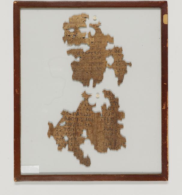 1 pane of glass containing 2 papyrus fragments ; 148 x 138 mm, 155 x 158 mm