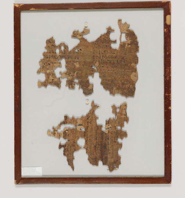 1 pane of glass containing 2 papyrus fragments ; 155 x 204 mm, 142 x 163 mm