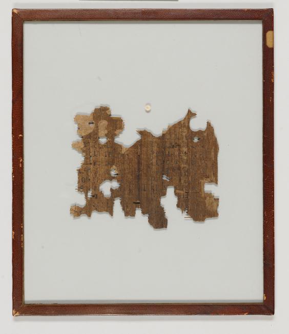 1 pane of glass containing 1 papyrus fragment ; 144 x 176 mm