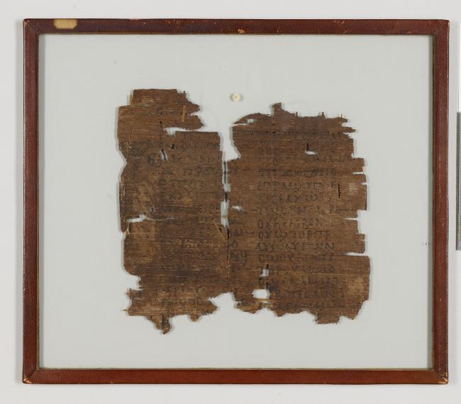 1 pane of glass containing 1 papyrus fragment ; 208 x 214 mm
