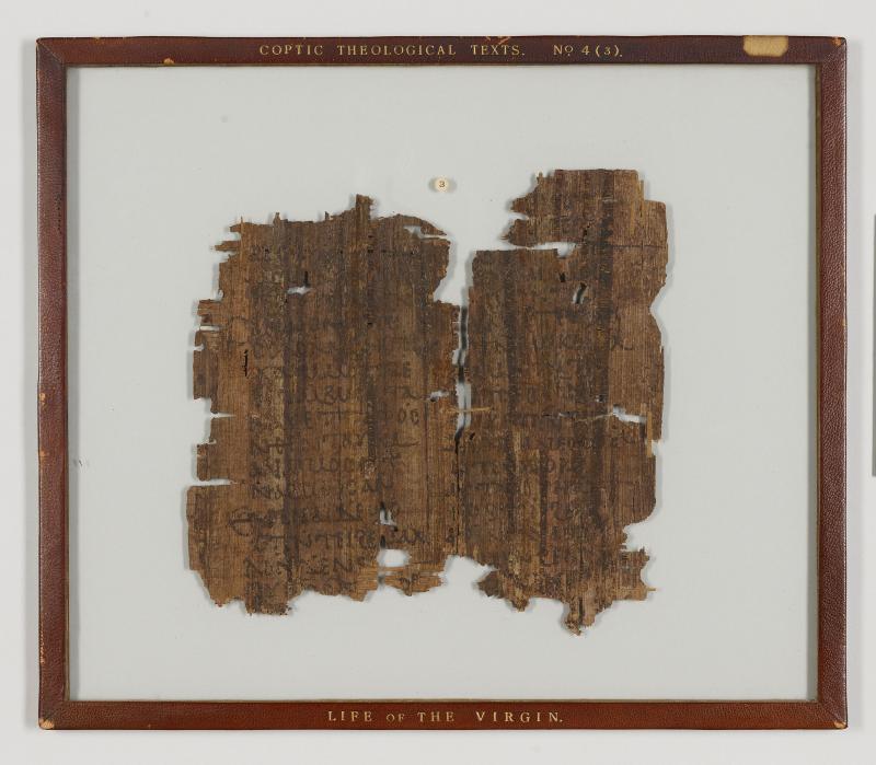 Manuscript fragments from four leaves, two of which ((1) and (2)) are from the same codex, containing parts of a narrative of the early life of the Virgin Mary; written in Egypt.