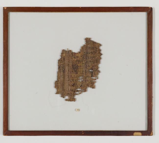 1 pane of glass containing 1 papyrus fragment ; 154 x 115 mm
