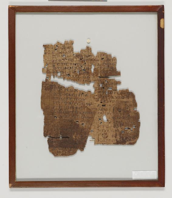 1 pane of glass containing 1 papyrus fragment ; 230 x 197 mm