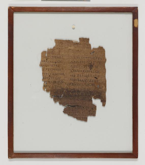1 pane of glass containing 1 papyrus fragment ; 200 x 160 mm