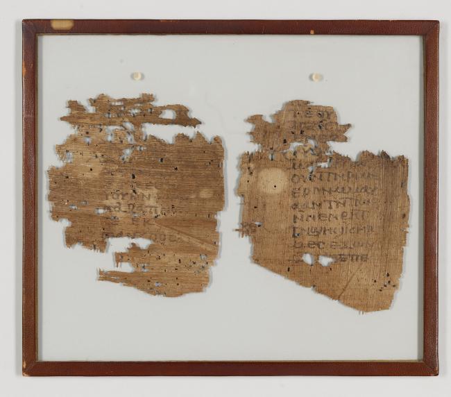 1 pane of glass containing 2 papyrus fragments ; 186 x 152 mm, 177 x 153 mm