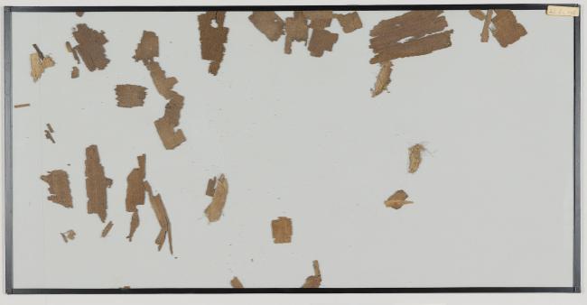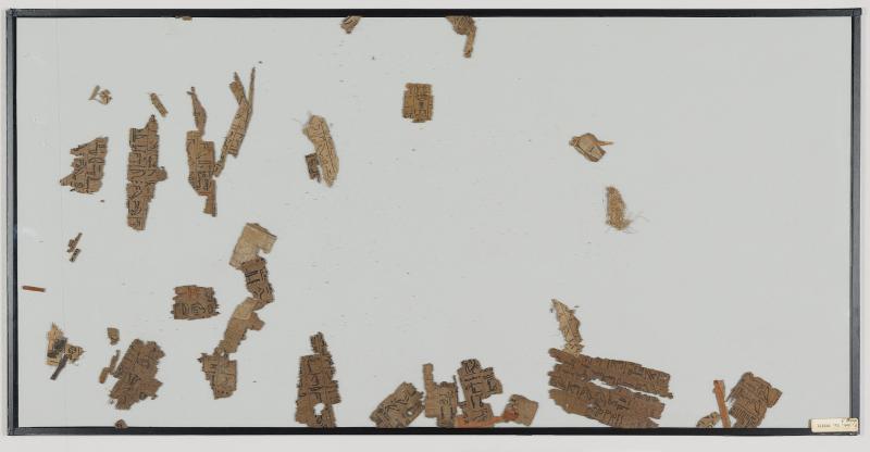 1 pane of glass containing many papyrus fragments