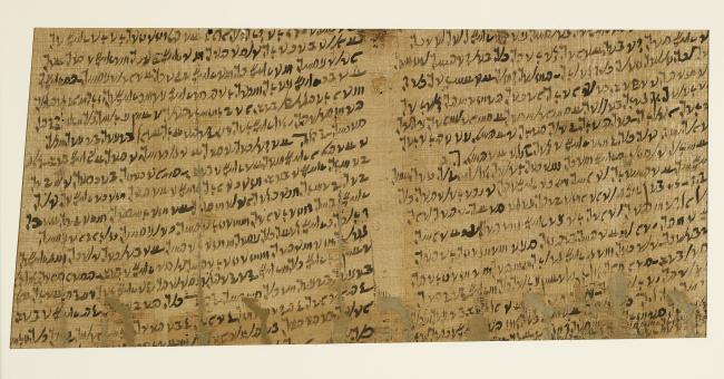 1 pane of glass containing 1 papyrus fragment ; 11 1/2 x 20 inches
