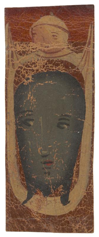 Iconographically, the token is also related to MS M.1222.1 and MS M.1020, fol. 32r, both of which depict Veronica holding a white cloth (the sudarium) with an oversized dark face of Christ.