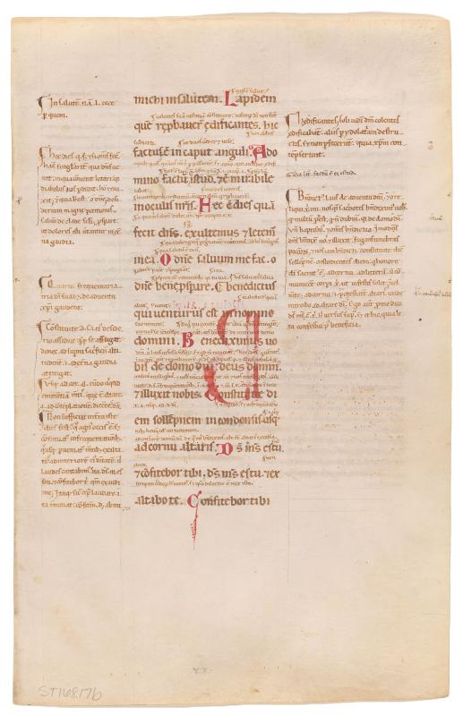 2 folios (3 columns) : vellum ; M.1223.1: 265 x 177 mm (10 3/8 x 7 inches); M.1223.2: 276 x 176 mm (11 x 7 inches)