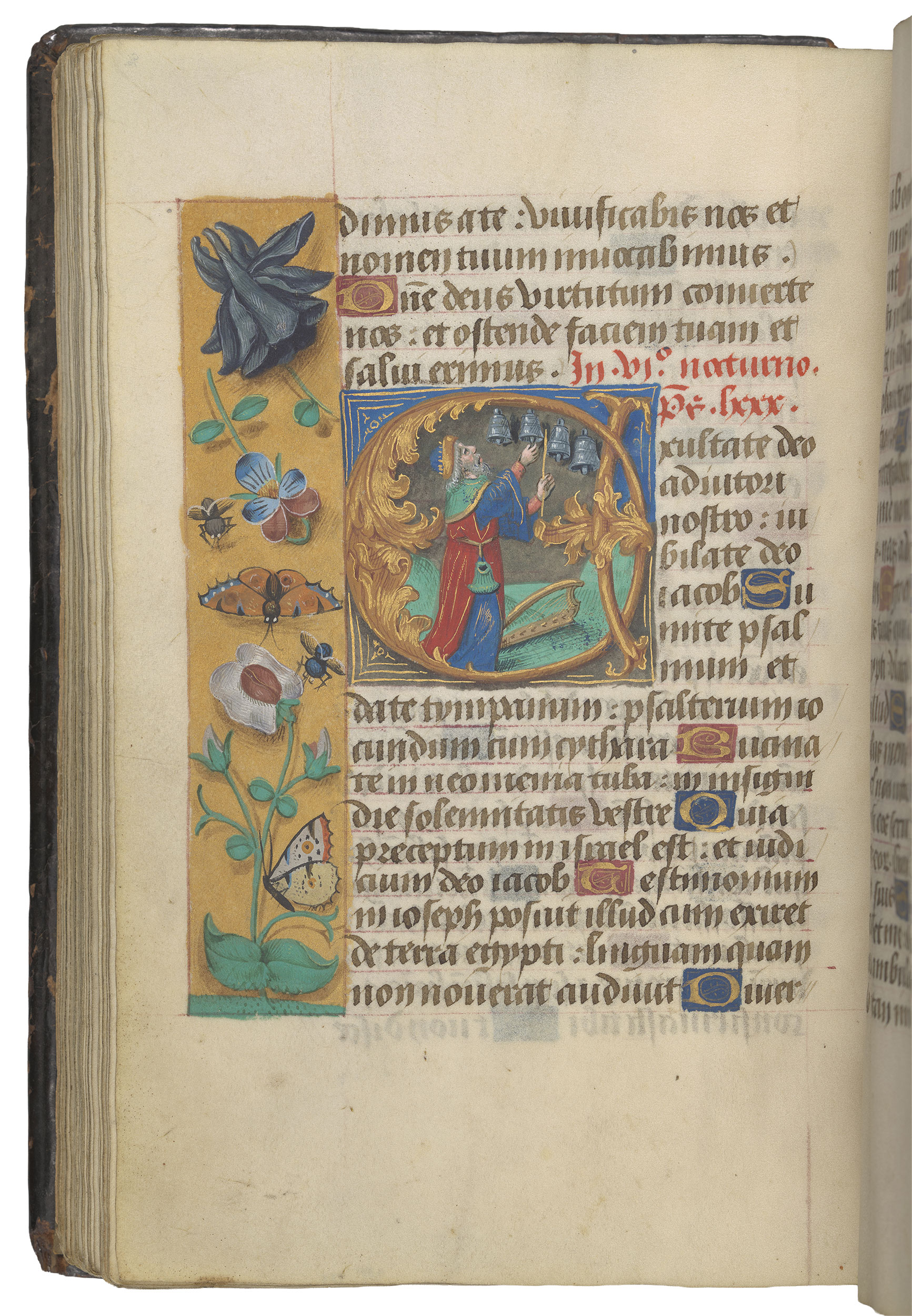 List of illustrations: fol. 15r: Initial B, David killing Goliath (Beatus vir, Psalm 1); fol. 38r: Initial D, David pointing to his eyes (Dominus illuminatio mea, Psalm 26); fol. 52v: Initial D, David and the Devil (Dixi custodiam vias meas, Psalm 38); fol. 67r: Initial D, David and the fool (Dixit insipiens, Psalm 52); fol 96v: Initial E, David playing bells (Exultate Deo, Psalm 80); fol. 112r: Initial C, David conducting two priests singing at a lectern (Cantate Domino, Psalm 97).