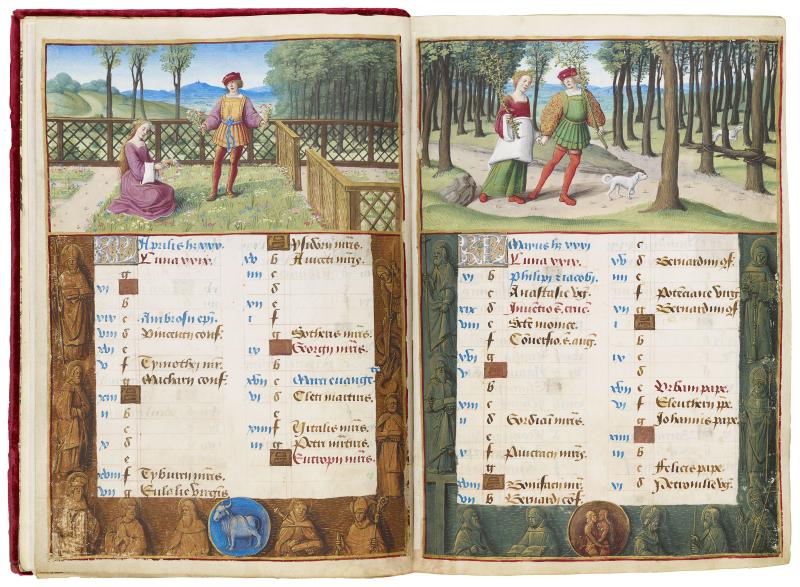 Decoration: 14 large and 29 half-page miniatures, and 12 calendar illustrations.