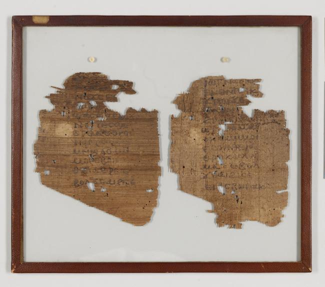 1 pane of glass containing 2 papyrus fragments ; 185 x 145 mm, 185 x 152 mm