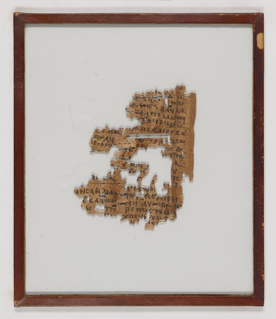 1 pane of glass containing 1 papyrus fragment ; 177 x 152 mm