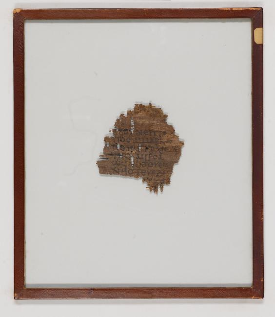 1 pane of glass containing 1 papyrus fragment ; 114 x 110 mm