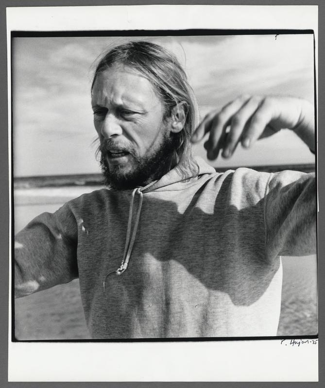 Half-length portrait of Paul Thek, facing three-quarters to the left with arms raised.