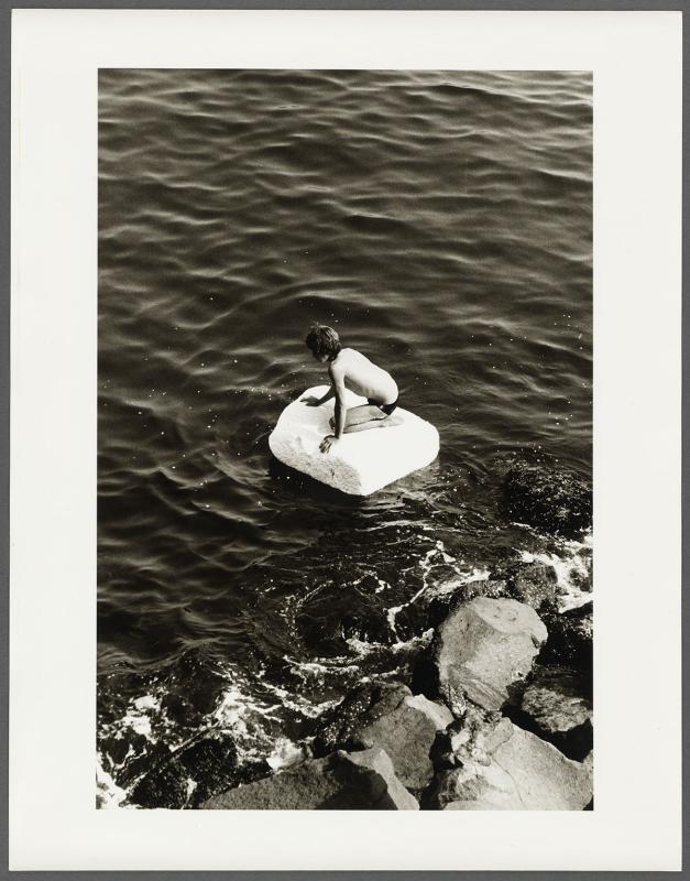 Verso: stamp, "The Estate of Peter Hujar, Stephen Koch Executor, Printed by the Artist"; stamp, "Copyright 1987, The Estate of Peter Hujar, Not to be Reproduced Without Written Permission from the Estate"; stamp, "From the Estate #" in pencil, "EPH 5372-1"; signed in pencil, "Stephen Koch"; in pencil, "Boy on Styrofoam Raft"; in pencil, "HUJ 160".
