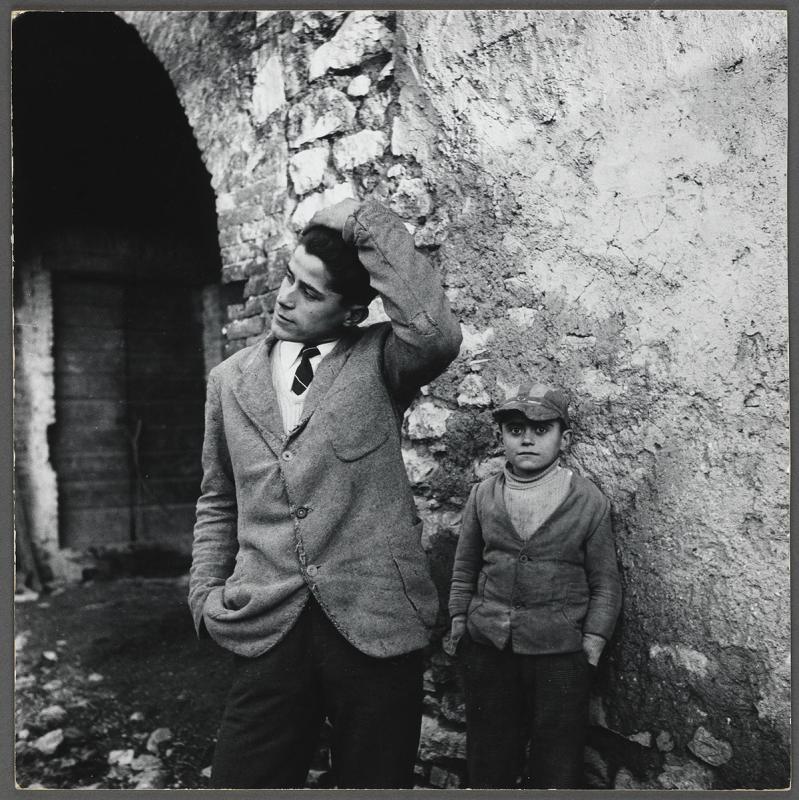 Verso: stamp, "The Estate of Peter Hujar, Stephen Koch Executor, Printed by the Artist"; stamp, "Copyright 19_ _, The Estate of Peter Hujar, Not to be Reproduced Without Written Permission from the Estate"; stamp, "From the Estate #"; signed in pencil, "Stephen Koch"; in pencil, "Young Man and Boy, Italy"; in pencil, HUJ 156".