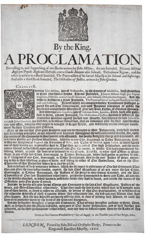 London : Printed by John Bill and Christopher Barker ..., 1660.