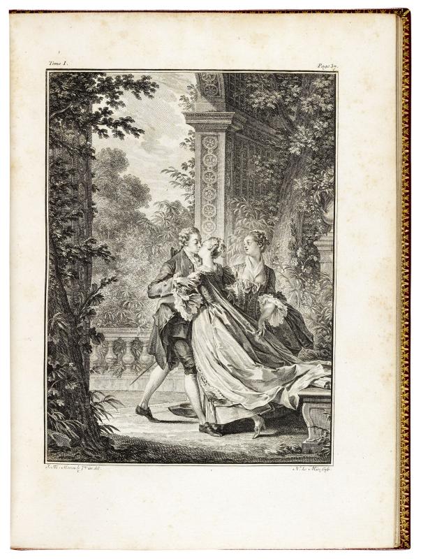 Engravings after Moreau, Le Barbier and de La Tour by St. Aubin, Choffard, Duclos, Duflos, N. de Launay, R. Delaunay, Le Mire, Leveau, Martini, Simonet, Dambrun, Halbou, Ingouf, Romanet and Trière.