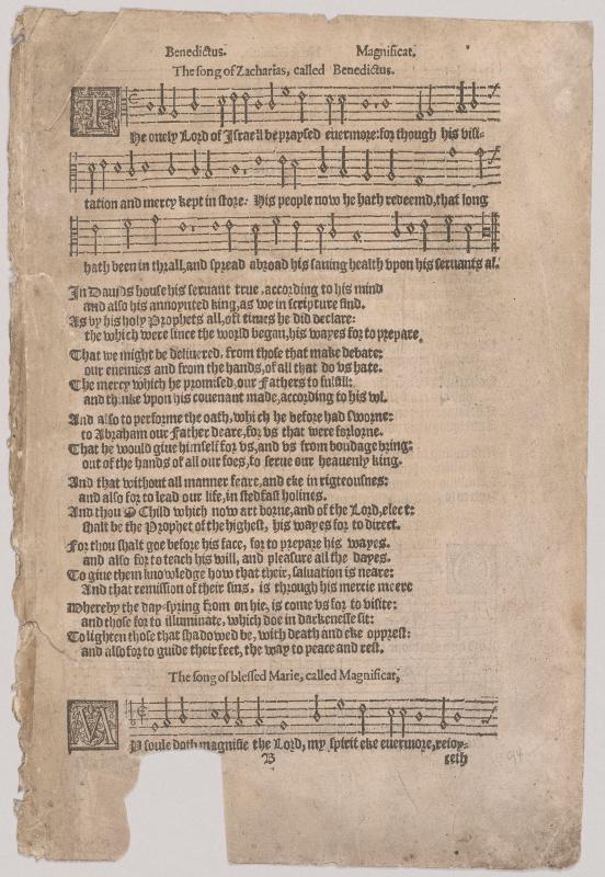 Verso: "Nunc dimittis" and "The song of Simeon, called Nunc Dimitis."