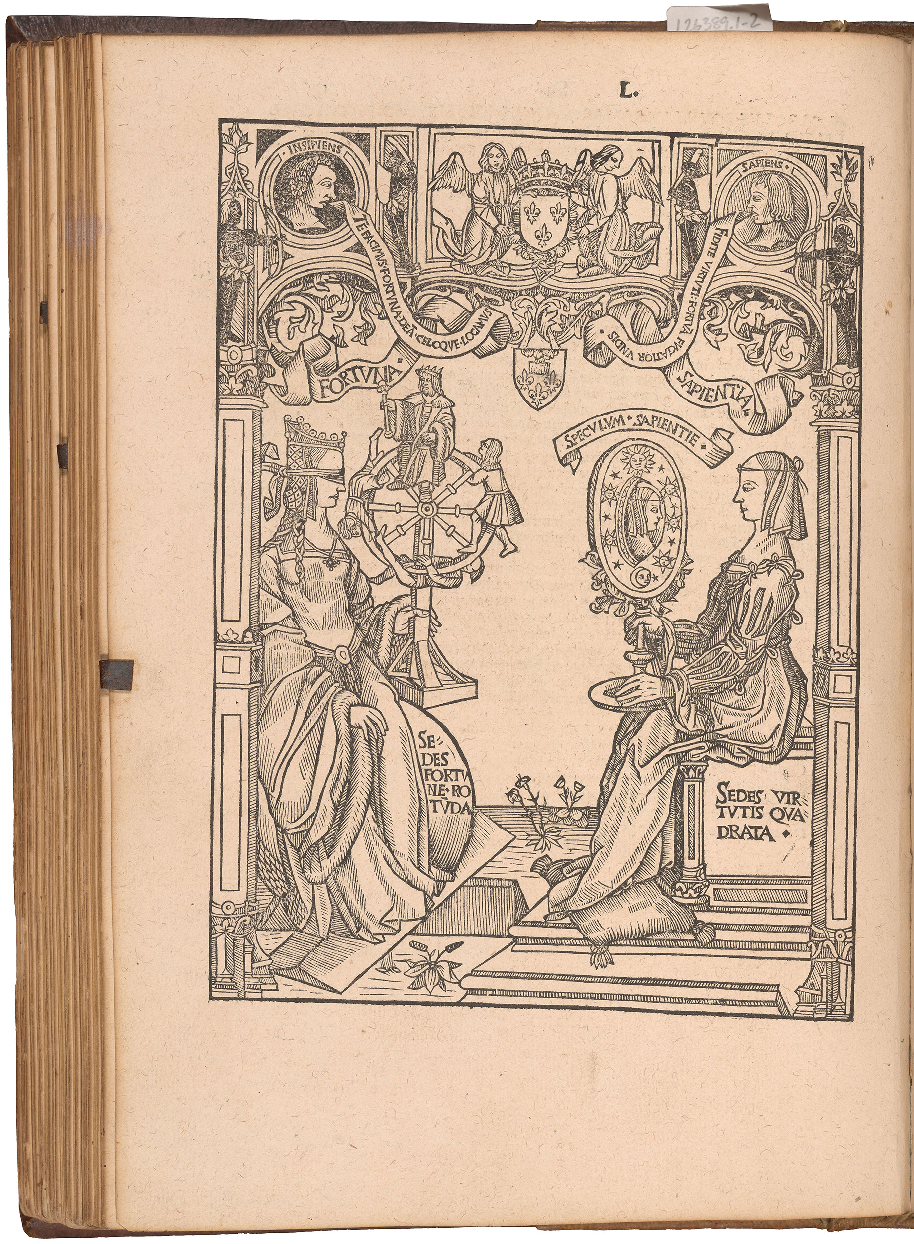 Title within historiated woodcut border in which the arms of the University of Paris and the initials of Henricus Stephanus are incorporated; with coat-of-arms of Franciscus de Hallevvin, bishop of Amiens, on leaf c4r and at end.
