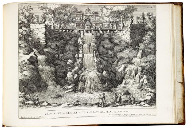 Title of pt. 4 reads: Le fontane del giardino Estense in Tivoli, con li loro prospetti, e vedute della cascata del fiume Aniene, disegnate, et intagliate da Gio: Francesco Venturini ...