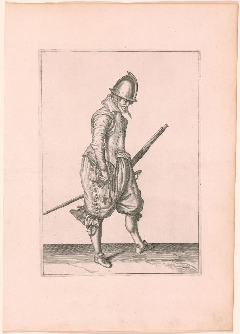 This print is after the drawing by Jacques de Gheyn II, A Soldier Preparing to Load His Caliver, given by Mr. and Mrs. Eugene V. Thaw (1979.1).
