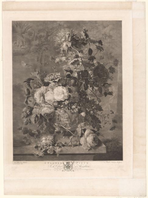 Engraved by Richard Earlom, designed by Joseph Farrington after Jan van Huysum.