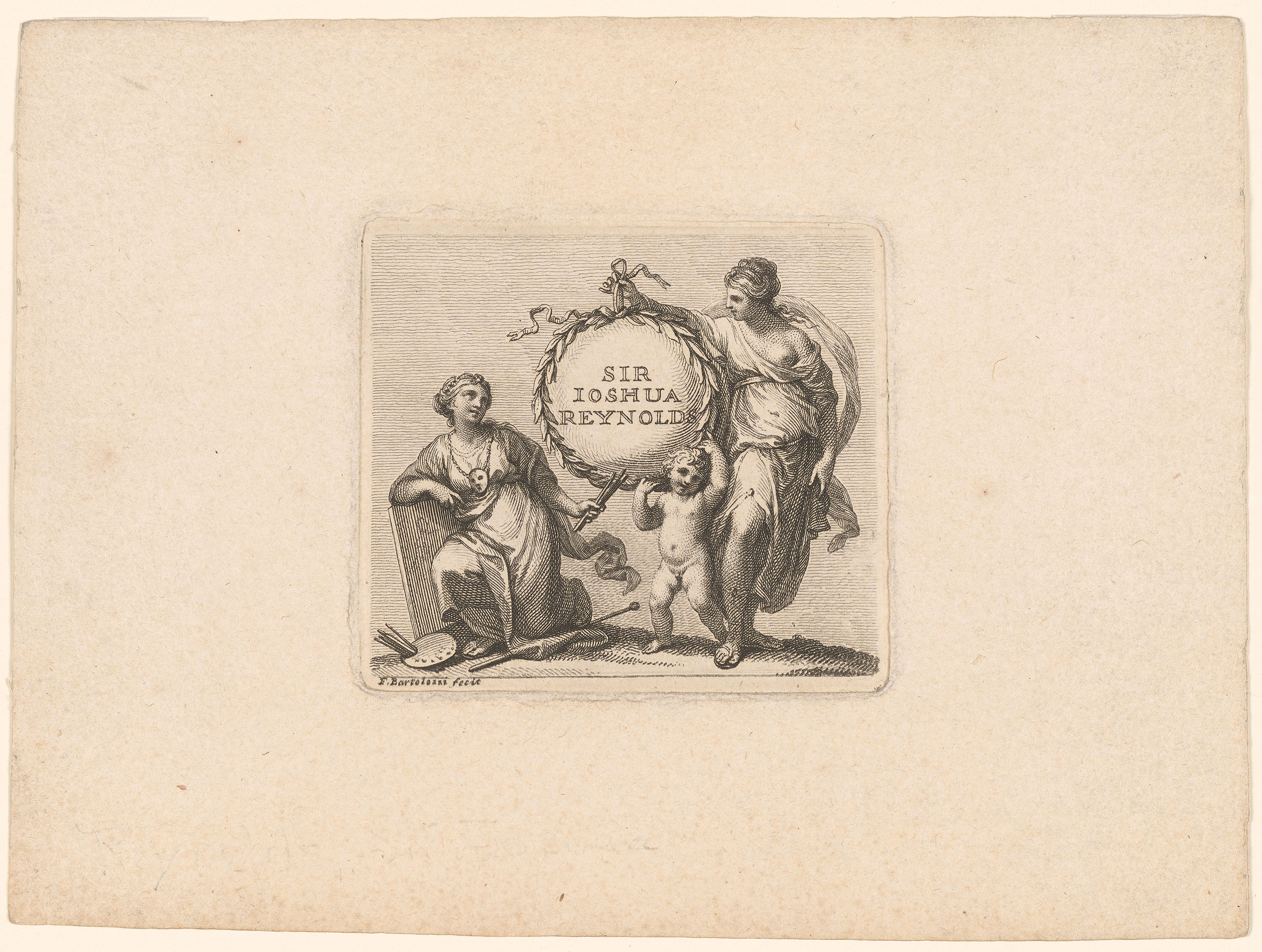 The name "Sir Ioshua Reynolds" appears in a cartouche held by two female figures and a putto.