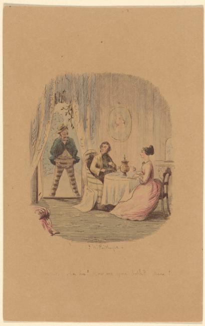 Print shows Mr. and Mrs. Lovetown seated at the breakfast table, with the figure of Felix Tapkins standing in a doorway at left.
