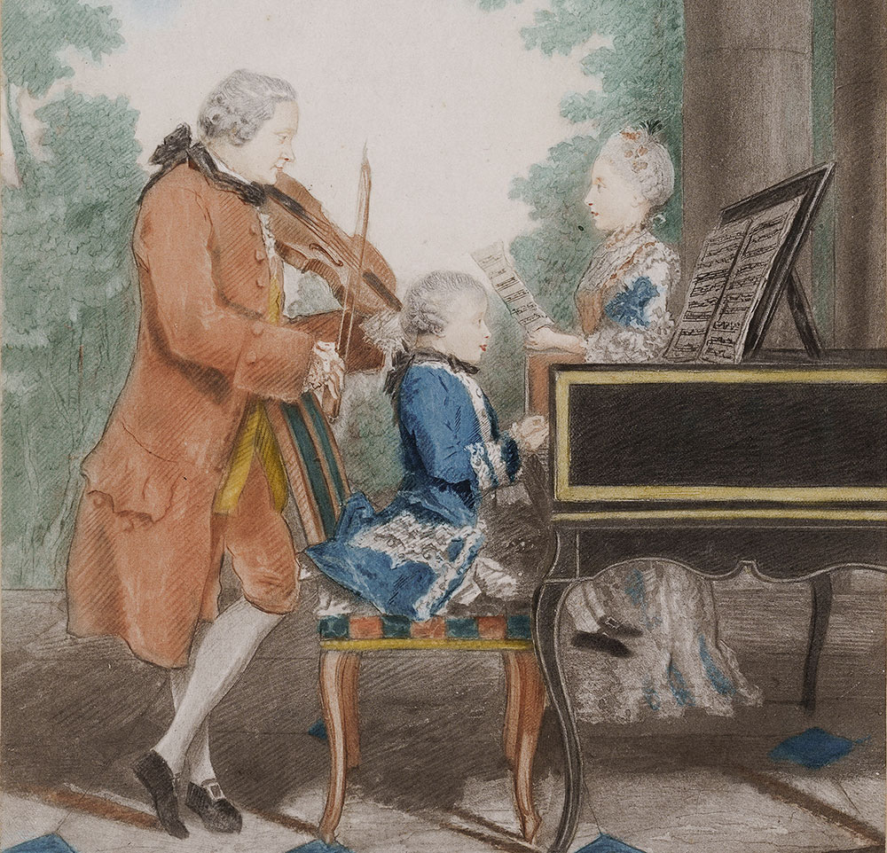 Jean-Baptiste Delafosse (1721–1806), after Louis Carrogis de Carmontelle (1717–1806). The Mozart Family, Paris, 1764. Copperplate engraving. Christopher J. Salmon Collection, New York.