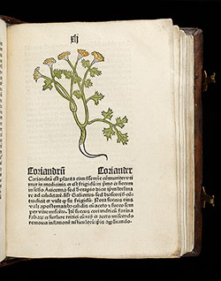 Coriander, from Herbarius latinus. Mainz: Peter Schoeffer, 1484. Peter Goop Collection.