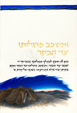 Ruth Departing the Tent of Boaz. The Joanna S. Rose Illuminated Book of Ruth, in Hebrew and English United States, New York, and Israel, Jerusalem, 2015-17 Commissioned by Joanna S. Rose, written by Izzy Pludwinski, designed and illuminated by Barbara Wolff. MS M.1210, fol. 21r Gift of Joanna S. Rose, 2018.