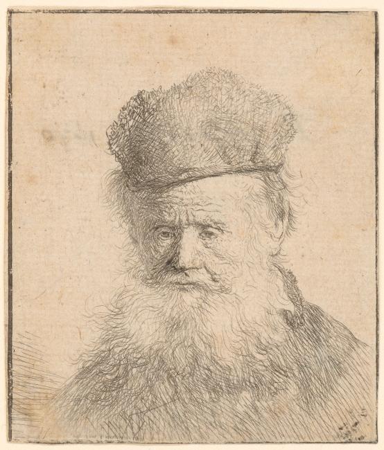Bust of an Old Man with a Fur Cap and Flowing Beard, Nearly Full Face
