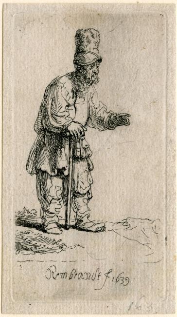 A Peasant in a High Cap, Standing Leaning on a Stick