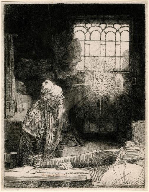 There are additional lines of shading on outline of upright book to extreme right, which differs from the other impression in the Library (RvR 360). Likewise there is a difference in work on luminous circle to right of window. The shading on the floor below the point of the curtain in center right has been clarified.