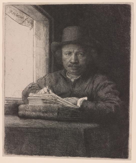 The new definition given to all elements of the composition results in a sense of greater stability. The look of absorbed self scrutiny which characterized Rembrandt's expression in the first state is now less pronounced. (Boston 1969, no. 7)