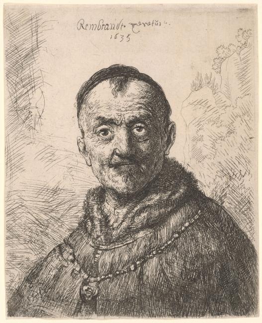 Signed and dated upper center, "Rembrandt geretuc 1635" (the 'g' and 'c' in reverse).