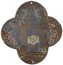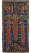 Limoges enamel plaque: Vertical rectangle, Crucifixion with the Resurrection of Adam