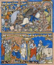 View images with descriptions from the Morgan's Picture Bible illustrated in thirteenth-century France.