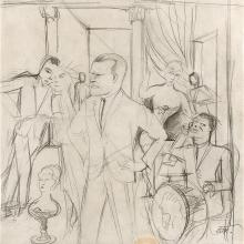 Graphite pencil, brush and black ink, watercolor and opaque watercolor on brown paper