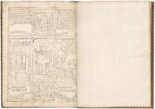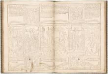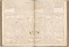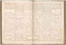 ca. 1470Biblia pauperum. [Netherlands, ca. 1470], fols. 40v (facsimile .v. verso)–40r (drawing .v. recto), PML 1.1