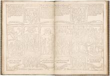 ca. 1470Biblia pauperum. [Netherlands, ca. 1470], fols. 39v (.t. verso)–40r (facsimile .v. recto), PML 1.1 -