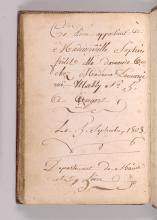 Perrault, Charles, 1628-1703. Contes de ma mere l'Oye : manuscript : [France], 1695, inner back cover, MA 1505 -