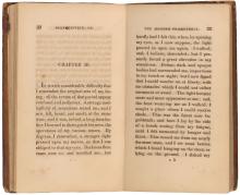 Shelley, Mary Wollstonecraft, 1797-1851. Frankenstein, or, The modern Prometheus. London : Printed for Lackington, Hughes, Harding, Mavor, & Jones, Finsbury Square, 1818., vol. II, pp. 22–23, PML 16799. -