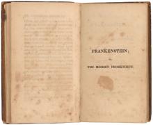 Shelley, Mary Wollstonecraft, 1797-1851. Frankenstein, or, The modern Prometheus. London : Printed for Lackington, Hughes, Harding, Mavor, & Jones, Finsbury Square, 1818., vol. I, p. [182]–vol. II, p. [i] Half title page recto, PML 16799.