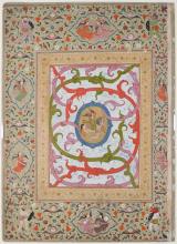 ca. 1750-1800A peri riding a composite horse surrounded by an acanthus-scroll border., , ca. 1750-1800., MS M.458.14
