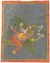 18th century[Kṛṣṇa and Rādhā flying on Garuḍa]., India, [17--], MS M.1018 -