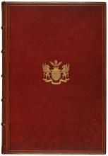 Cover of a volume of manuscripts and letters of Oscar Wilde, stamped in gilt with the Queensberry arms.