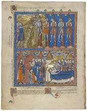 ca. 1244–1254An Execution, Joshua's Final Commands, Joshua's Passing, Old Testament Miniatures, France, Paris, 1240s, MS M.638 (fol. 11v) -
